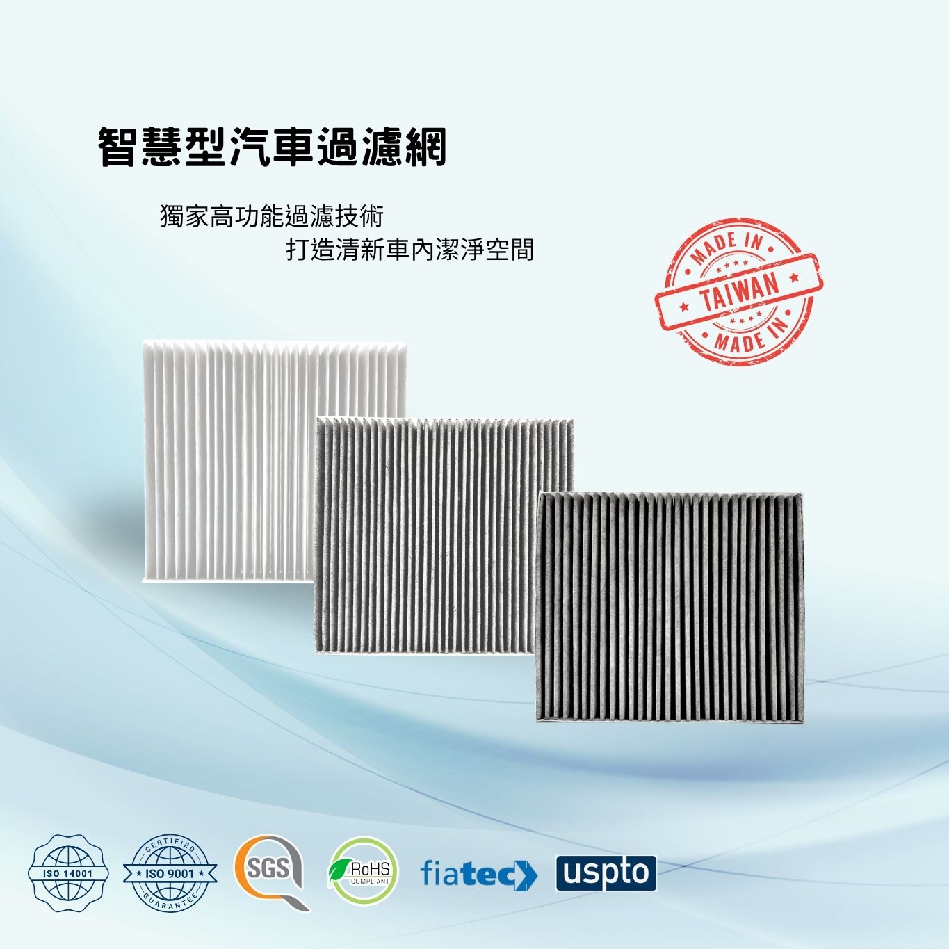自主研發奈米纖維專利技術,能有效阻隔空氣細菌及病毒,並具有99%以上減菌功能。亦有效抑制、過濾空氣中細懸浮微粒、PM2.5。