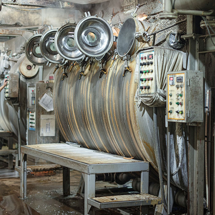 使用電腦全自動特殊液流無張力染布機進行布疋的精煉、開纖、減量作業,更採取獨步的特殊處理程序使布的品質吸水性、擦拭性達到極緻的高標狀態。 |