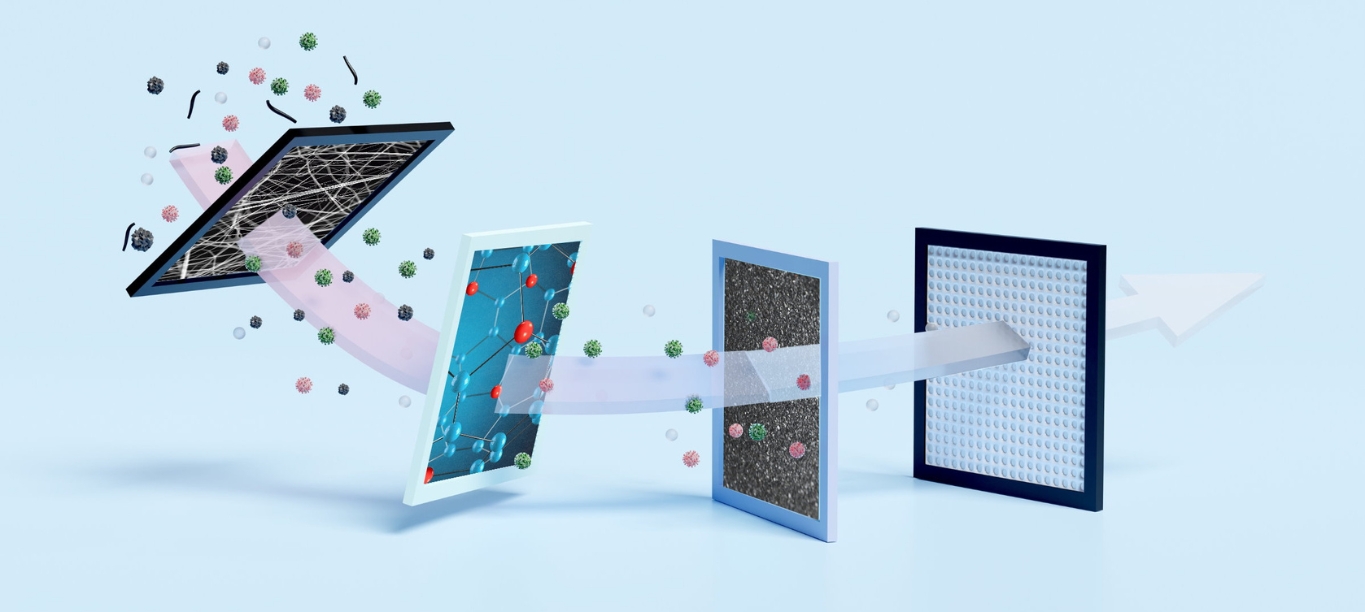自主研發奈米纖維專利技術,能有效阻隔空氣細菌及病毒,並具有99%以上減菌功能。亦有效抑制、過濾空氣中細懸浮微粒、PM2.5。